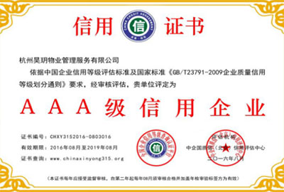 2016年榮獲AAA級(jí)信用企業(yè)